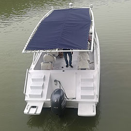 船體材質玻璃鋼,具有強度高、重量輕、耐腐蝕、不怕日曬雨淋、色彩艷麗、外型美觀的特點。艙內牽引電機,電瓶驅動,沒有污染,可由游客自行駕駛。